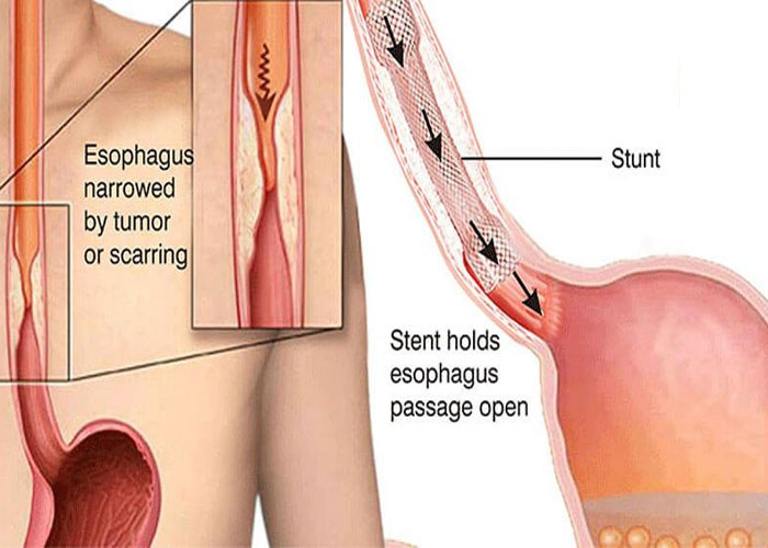 In an esophageal stent procedure, a tube is placed in your esophagus (throat) to keep open a blocked area. The tube helps you swallow solids and liquids.